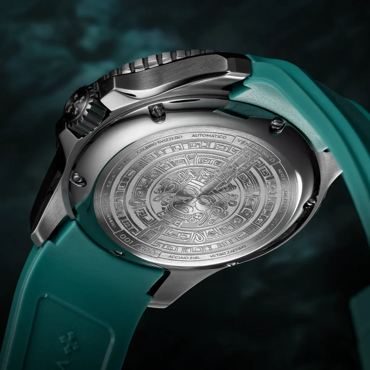 Abbiamo arricchito questa edizione limitata con una raffigurazione precolombiana finemente incisa nel fondello, arricchita da una satinatura circolare. Questo affascinante dettaglio racconta la millenaria storia di queste civiltà e la loro profonda connessione con la natura, rappresentando una maestria artigianale che unisce il passato e il presente in modo suggestivo.