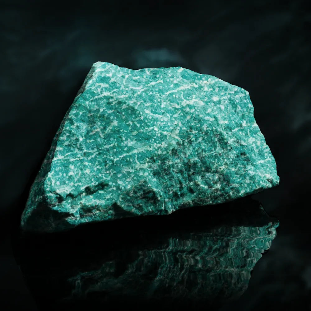 L'amazzonite è celebre per la sua vasta gamma di tonalità, che spaziano dall'azzurro intenso al verde più delicato, creando un affascinante caleidoscopio di colori. Questa variazione cromatica è il risultato della presenza di piombo nella sua struttura cristallina. Ogni singolo pezzo di amazzonite è un'opera d'arte unica, con venature e pattern che conferiscono profondità e carattere distintivo.