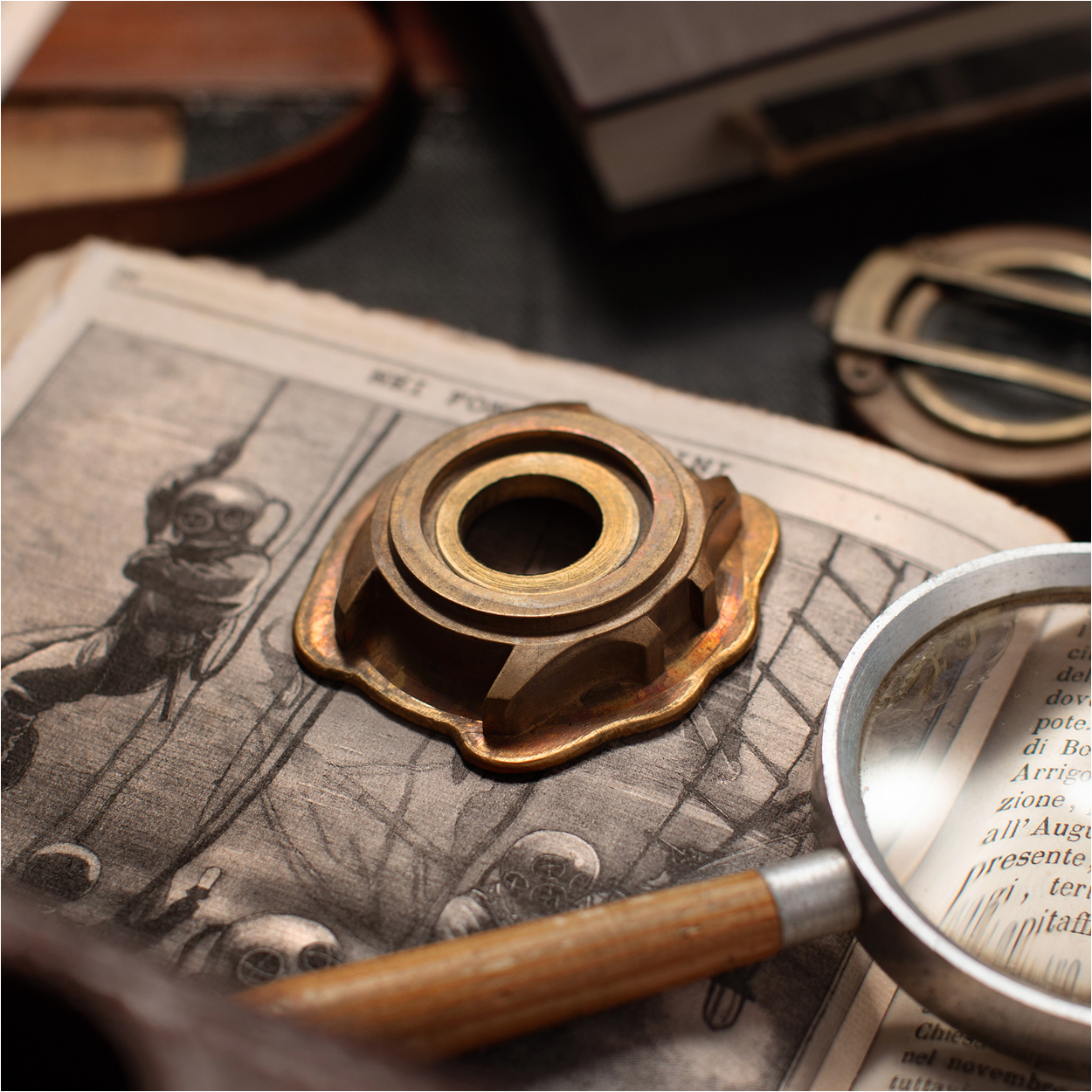 Materiale nautico per eccellenza, il bronzo fu scelto nell’Ottocento dai palombari veneziani per gli elmi degli scafandri usati nelle riparazioni subacquee in laguna. La sua composizione lo rendeva ideale: non arrugginisce, non si spezza e non si disgrega a contatto con l’acqua salmastra. Al contrario, si ossida lentamente, formando una patina che ne protegge l’integrità.