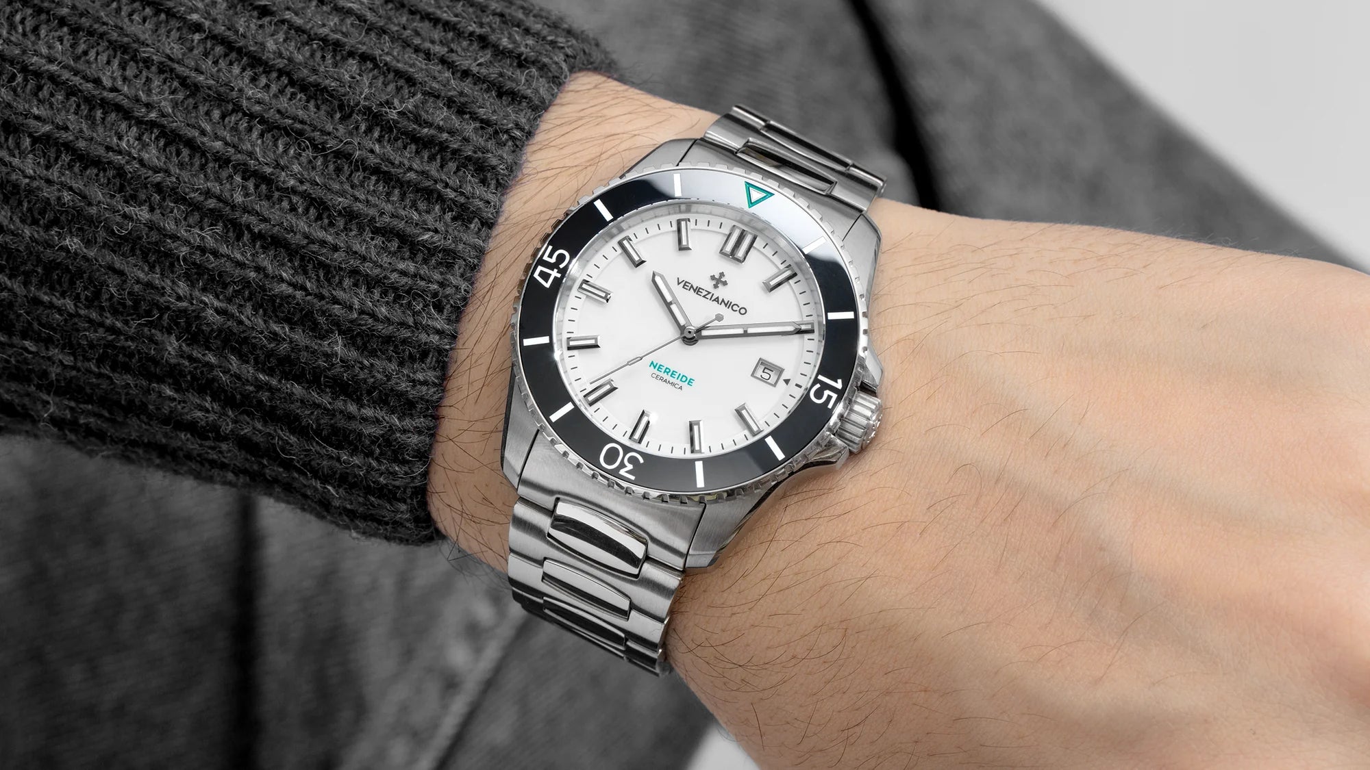 Il quadrante del nuovo Nereide Ceramica si ispira all'antica tradizione della smaltatura veneziana, una raffinata tecnica che ha adornato opere d'arte e gioielli con uno strato di smalto pregiato sin dal Medioevo. Grazie all'applicazione accurata e alla cottura ad alta temperatura, lo smalto viene fuso sulla superficie del quadrante, ottenendo una finitura liscia e brillante che conferisce allo stesso una longevità senza pari e una bellezza duratura nel tempo.