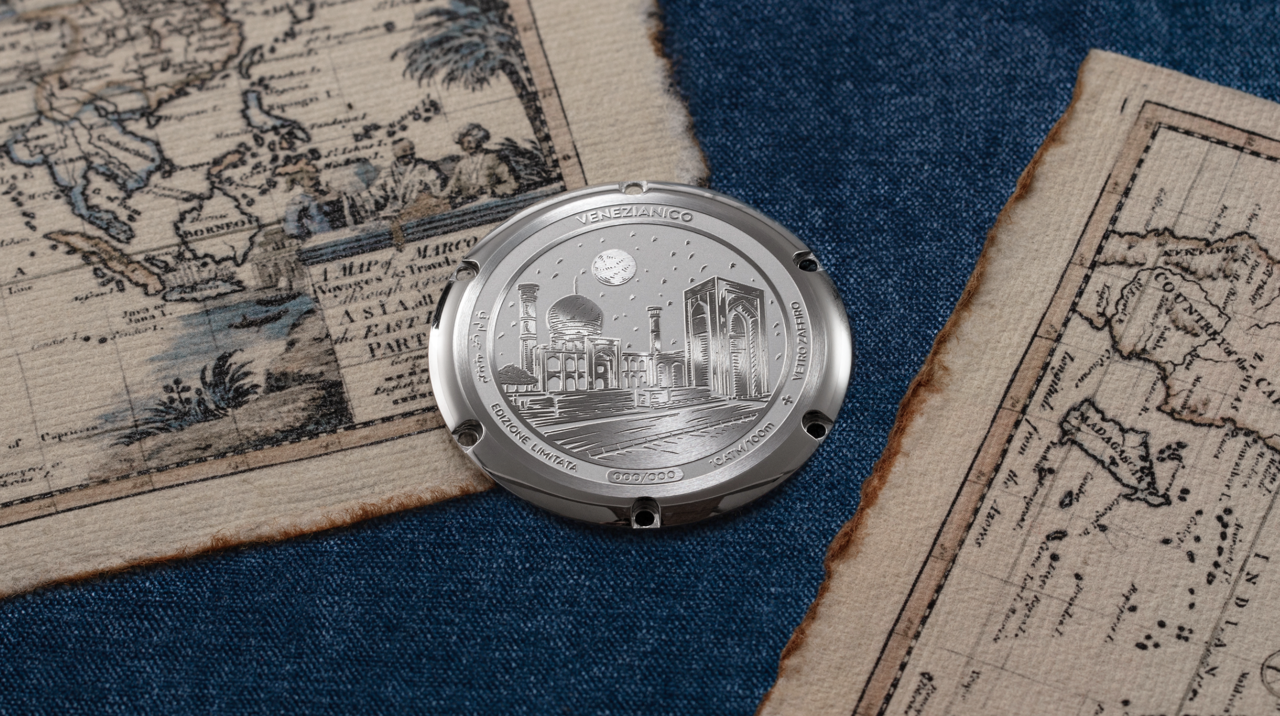 Questa Edizione Limitata di 300 esemplari numerati celebra gli scambi culturali tra Venezia e l’Asia Centrale, valorizzando il ricco patrimonio artistico della regione. Samarcanda, crocevia millenario della Via della Seta e cuore della civiltà timuride, è l’anima ispiratrice di questo modello. Il quadrante, realizzato a mano con un mosaico di madreperla, richiama i motivi ornamentali persiani e presenta numeri in carattere farsi. Ogni esemplare è un omaggio all’eleganza architettonica e al prestigio culturale di uno dei periodi più fiorenti della storia centroasiatica.