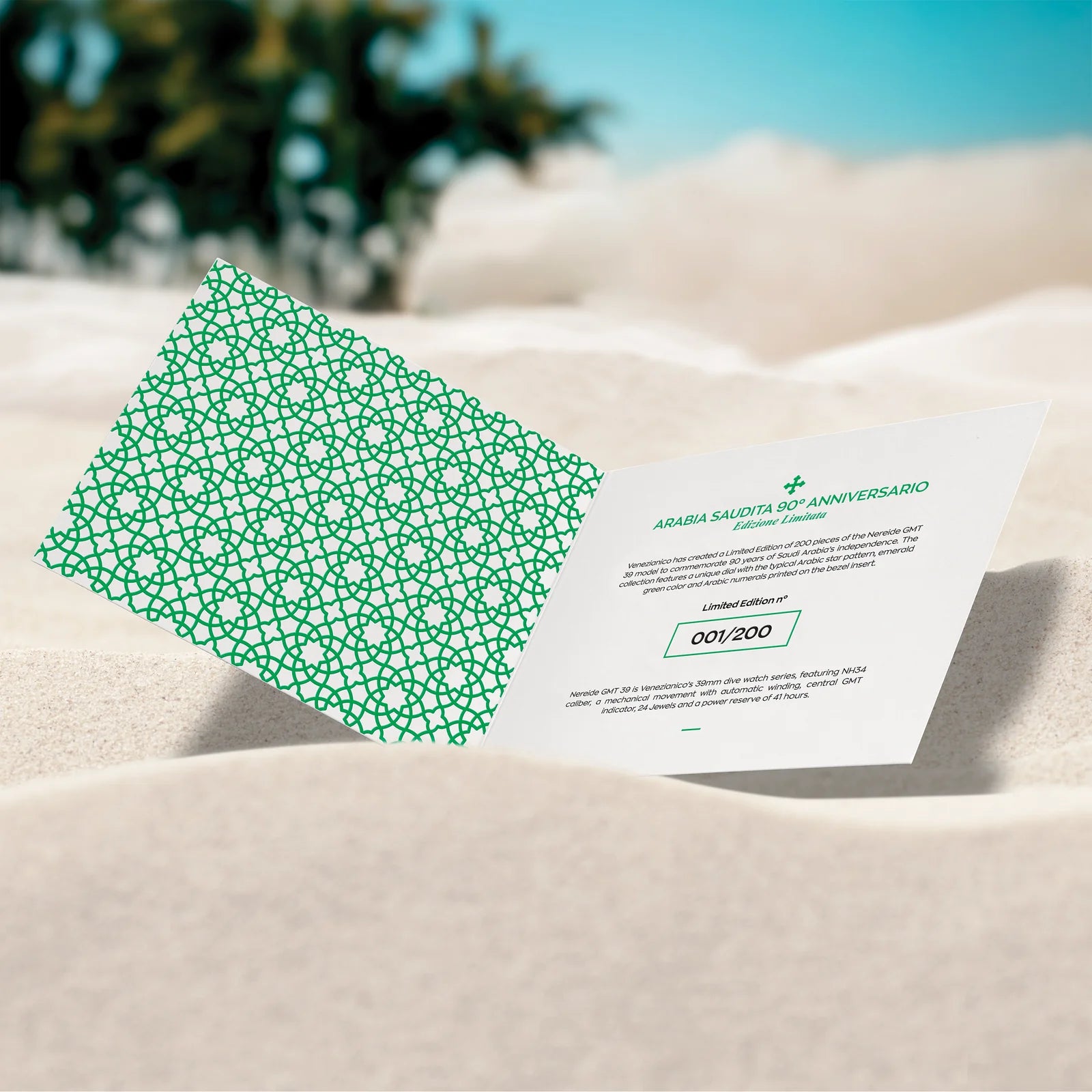 Abbiamo scelto di realizzare 200 pezzi per celebrare il 90° Anniversario dell'Indipendenza dell'Arabia Saudita. Ciascun orologio è identificato da un numero seriale progressivo inciso sul fondello e riportato sul Certificato di Autenticità.