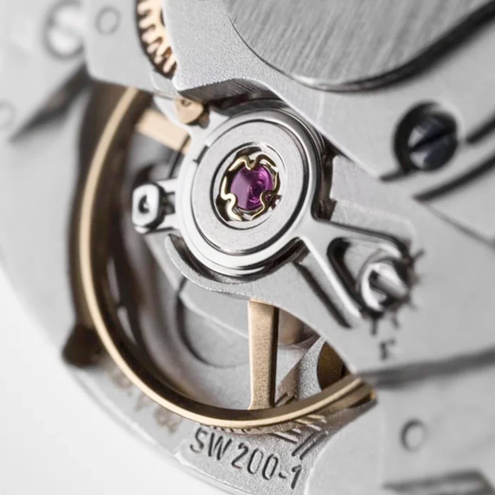 Noto per la sua qualità, Sellita SW200-1 è un calibro automatico Swiss Made di comprovata affidabilità. Impreziosito da 26 rubini, il movimento vanta un'elevata precisione grazie alle 28.800 alternanze orarie, carica bi-direzionale e fermo macchina.